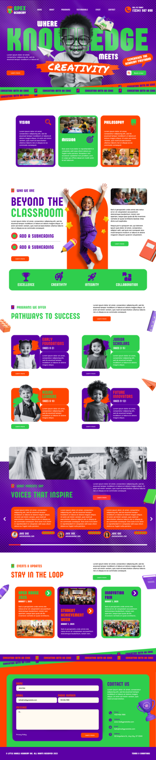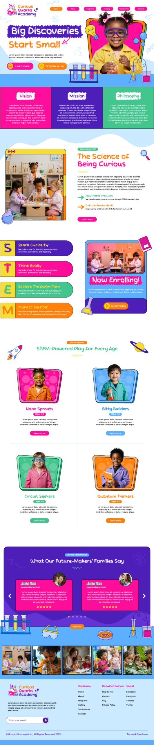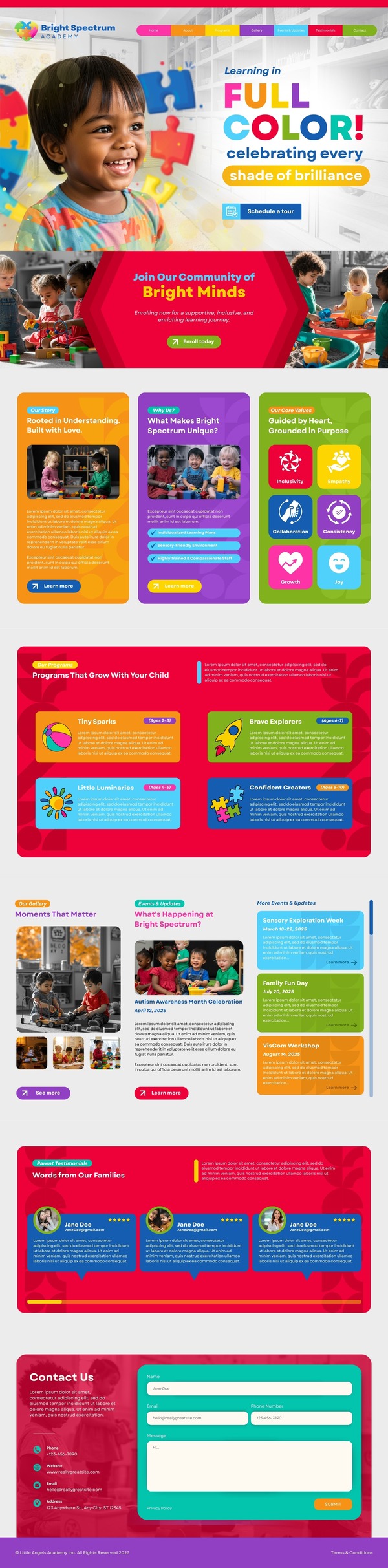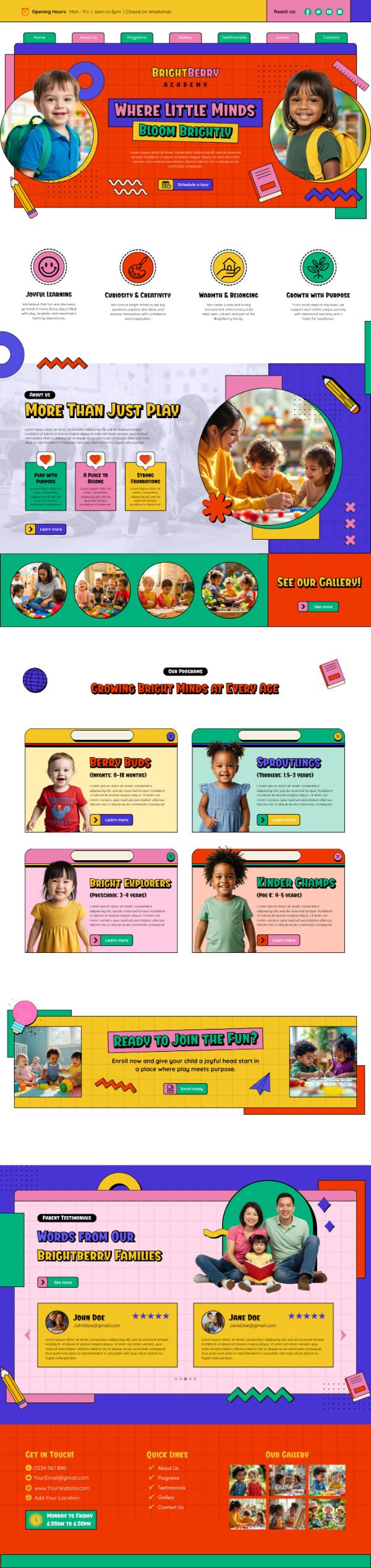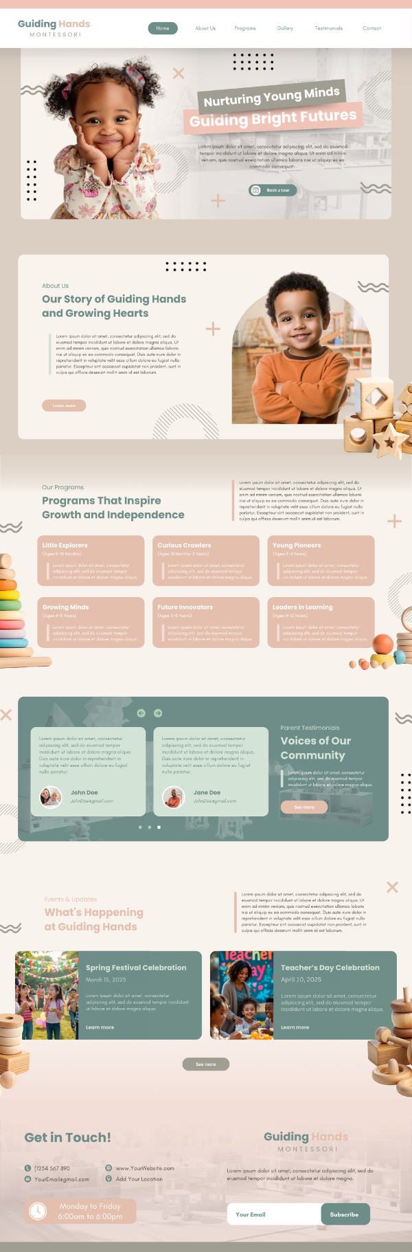 Welcome to the Classroom Panda Website Template Library! Browse our amazing selection of templates below and find the perfect fit for your childcare branding. Each layout is displayed so you can easily visualize how your website will look on a desktop. We’ll customize the colors and photos to match your preferences—just let our team know if you want to stick with the template’s colors or use your own branding. Please note: If you choose to switch to a different template after your project has started, a change fee of $199 will apply. For a fully custom design, there’s an additional $399 charge. We add fresh styles every week, so check back often! If you have any questions, feel free to message us.